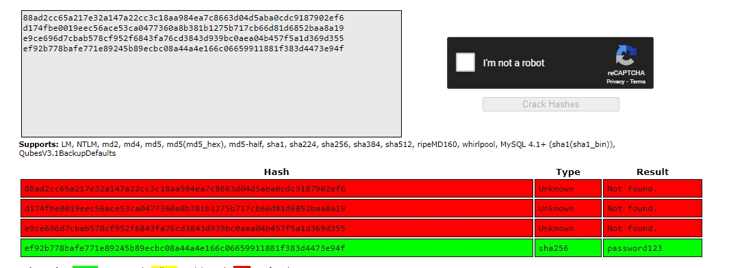 There's like over 890 hashes here, so cracking all of them is impossible without melting my laptop. In this case, we could use crackstation to test out 20 hashes at a time. Then, I would check for the occurrence of the hash within the main account. After a while, I managed to crack one.