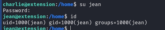 Jean has the user flag, and we can easily su to jean using the earlier credentials. Important to note is that we could not SSH into jean in the first place was because our public key was denied access.