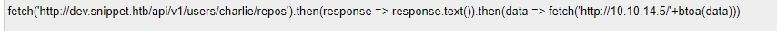 What this does is essentially is fetch('http://10.10.x.x') for Charlie to execute upon looking at the issues.