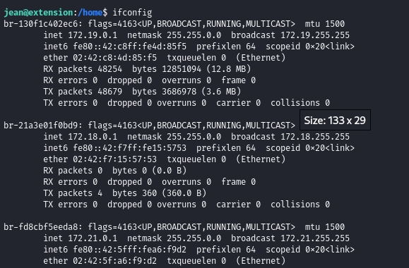 Upon checking ifconfig, we can see that there are loads of other network interfaces within this machine, indicating that we could be in a Docker container of some sort.