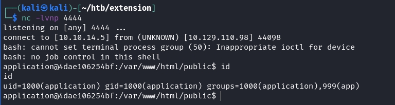 Within the PHP files, there had to be some form of vulnerability that would allow me to gain RCE, so I did a basic grep -r <term> for common PHP shells, like system, and shellexec. Shell_exec worked, as I saw this: