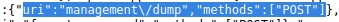 When changing this endpoint to the /management/dump endpoint, we get a 400 response saying that we are missing arguments.