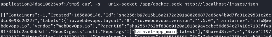# curl -s --unix-socket /var/run/docker.sock http://localhost/images/json