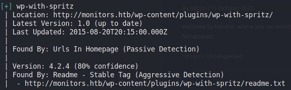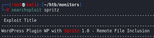 We can run wpscan to enumerate the plugins and version, and this finds that wp-with-spritz is being used.