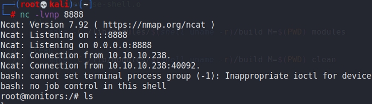 make -C /lib/modules/4.15.0-generic/build M=/root cleanGet them both into the root directory and start listening on a port. Afterwards, we can run make and insmod reverse-shell.ko. This would trigger the reverse shell, and give us a shell as root.