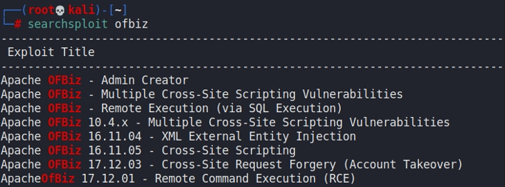 The bottom of the page shows that this is running Apache OFBiz Release 17.12.01, which is vulnerable to loads of exploits, including an RCE one.