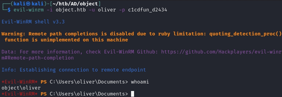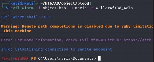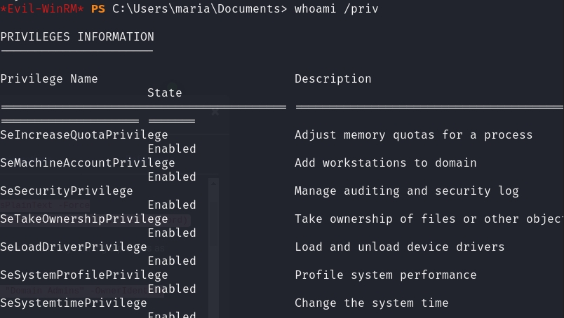 Afterwards, we can re-logon using evil-winrm and see that we have full administrative privileges:
