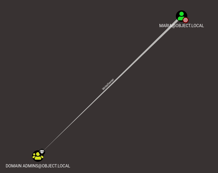 And lastly, the maria user has WriteOwner permissions over the Domain Admins group: