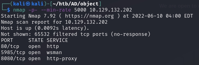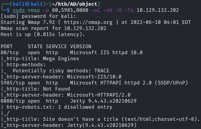 Doing a detailed scan, we can find that port 8080 was running a Jetty instance.