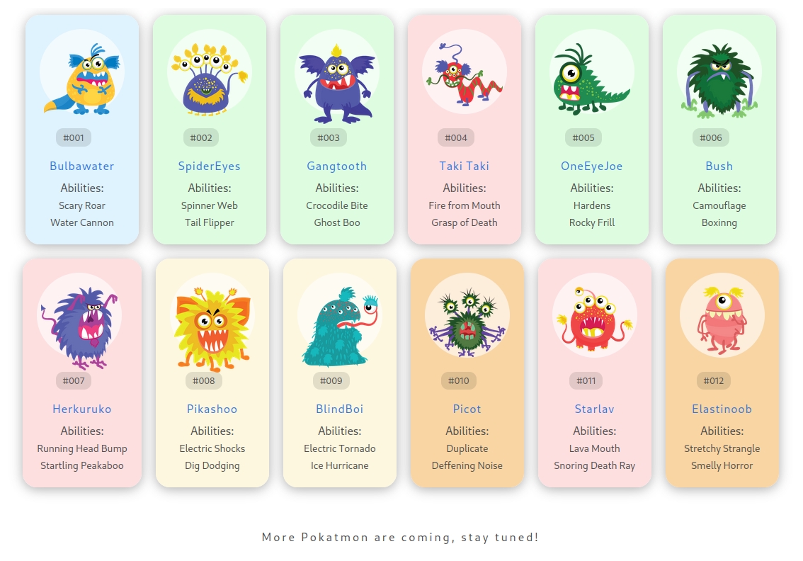 We can take a look at the Pokatdex and see that there are entries for each specific creature. Props to the creator for designing these: