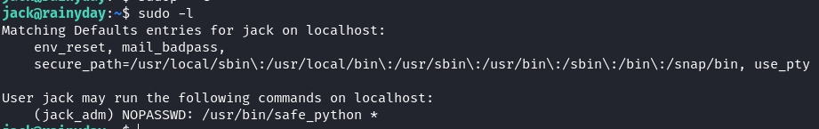 After getting to jack_adm, we can check sudo privileges again to see this:
