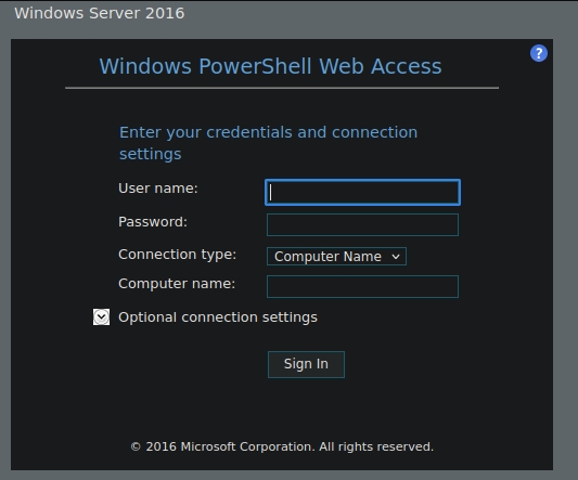 Now, we can access the /staff page we were rejected from earlier. This would reveal a Powershell Web Access page.