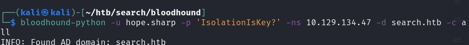 After getting these credentials, I wanted to use Bloodhound to map out all objects within the domain. Since I don't have a shell yet, I used bloodhound-python.
