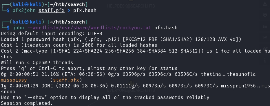 We can easily crack this with pfx2john and john.