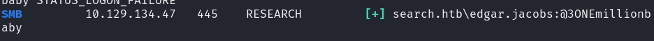 Then, we can find out if the passwords we have are valid for any other users. I found that edgar.jacobs had the same password as the web_svc user.