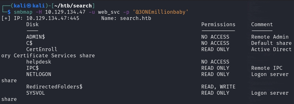 With this user's credentials, I enumerated the shares that were available.