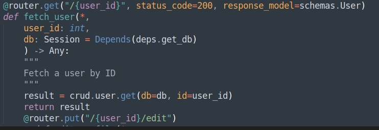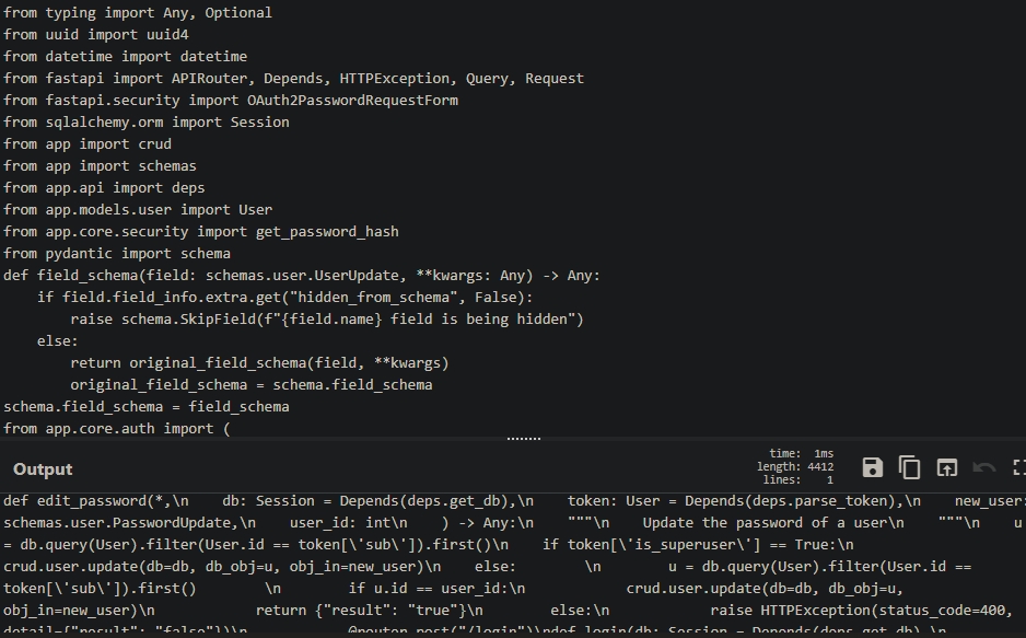 Within the /home/htb/app/api/v1/endpoints/user.py file, this was the original code.