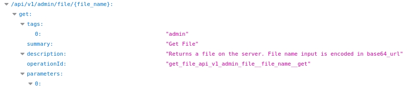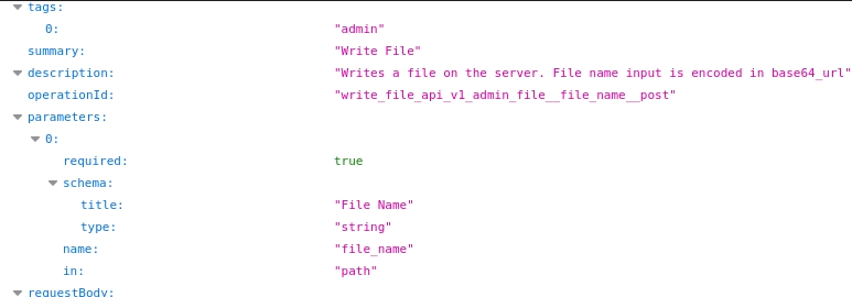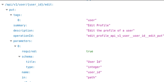 Afterwards, we can access the /openapi.json endpoint to view the functionalities of this API. There was one new functionality, which was to edit the profiles of users.