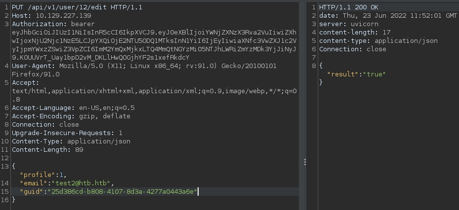 After changing all of these, we just need to retrieve the new JWT token we can use for further exploitation.