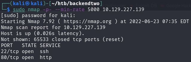 Since this builds on the other Backend machine from UHC, there isn't a lot of enumeration to do.