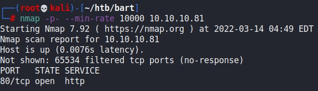 Only one port was available. We had to add forum.bart.htb to our /etc/hosts file to access the website.