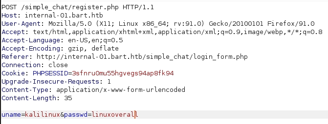 However, what's interesting was the URL of the website, at http://internal-01.bart.htb/simple_chat/login_form.php. Googling around, we can find the exact simple_chat PHP application being used as it is a open-source project.