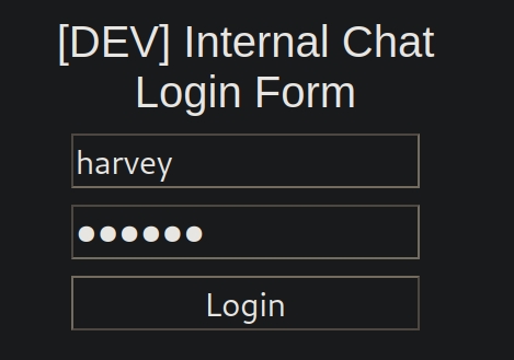 harvey:potter works as credentials to let us log in. There, we would view an internal chat instance.