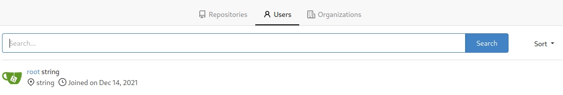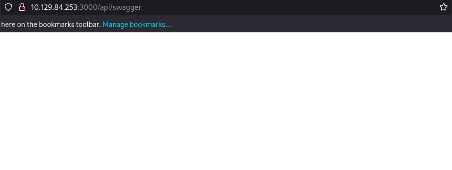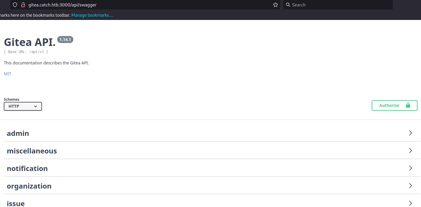 Nothing much there. However, Gitea does have an API present at the bottom, and clicking it loads an empty page: