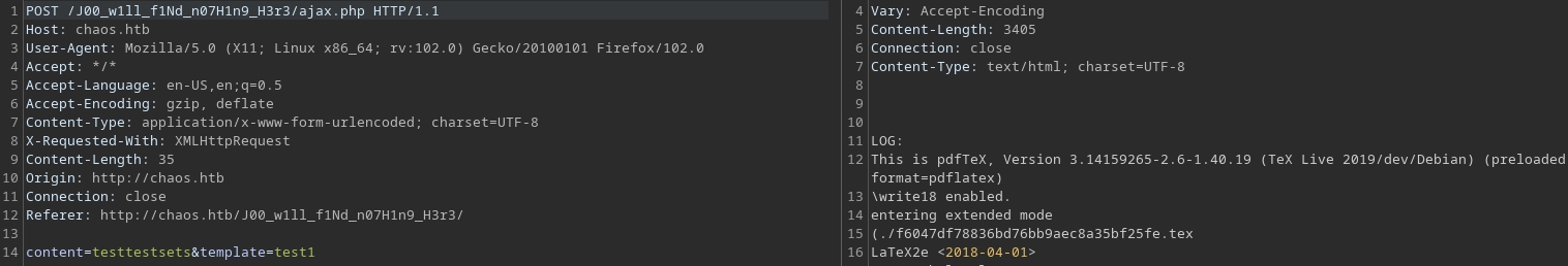 The above reveals that it is running an outdated version of pdfTeX. There are multiple methods of which we can use LaTeX injection to get RCE: