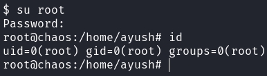 done popd whileI noticed that ayush can run tar, which allows us to escape the shell using:
