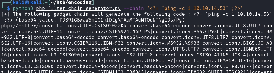 +?>So this file uses the include() function, which is vulnerable to the php filter chain attack.