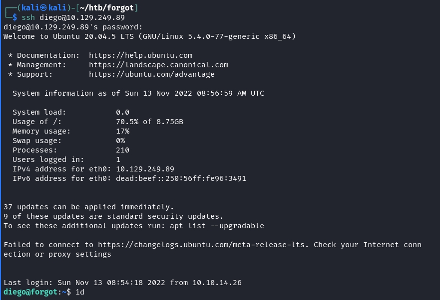 Cool, we have credentials. diego:dCb#1!x0%gjq. Now we can SSH into the machine as diego.