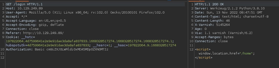 Anyways there seems to be an administrator on this website somewhere, and it's not robert. When looking around at the requests to see if we can find some hidden stuff, I managed to see how the website authenticates us, and its via a Authorization Basic cookie.