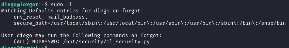 Running a quick sudo check, we can see that we have some ml_security.pu script we can run.