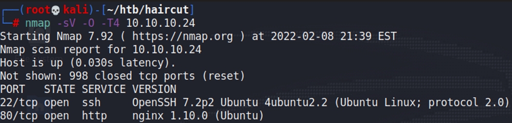 Nmap scan: