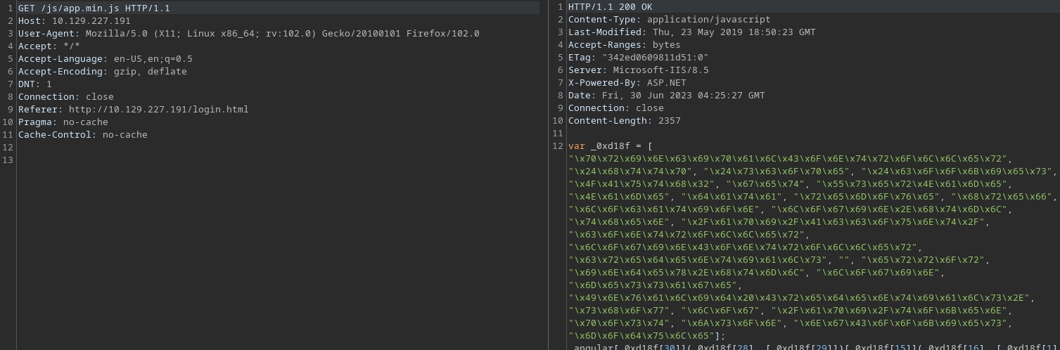 The app.min.js file was obfuscated JS code. We can deobfuscate it here: