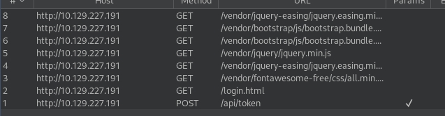 I noticed that in the requests proxied, there wasn't any request to /. When I visit it, the dashboard loads for a brief second before redirecting me to the login page. Weird. Anyways we can take a look at some of these JS files since we don't have any credentials yet.