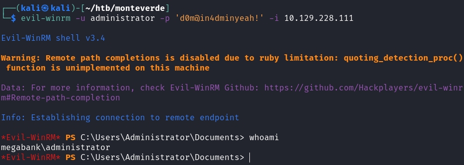 SMB 10.129.228.111 445 MONTEVERDE [*] Windows 10.0 Build 17763 x64 (name:MONTEVERDE) (domain:MEGABANK.LOCAL) (signing:True) (SMBv1:False)