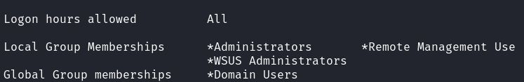 When we enumerate the groups we are in, we find that we are within the WSUS Admins group: