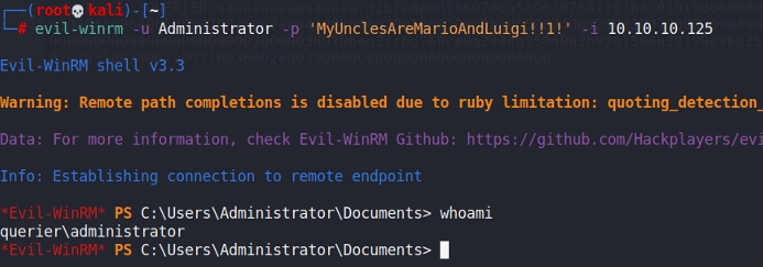 Earlier, Nmap detected that port 5985 for WinRM was open. As such, we can use evil-winrm to gain a shell as the administrator.
